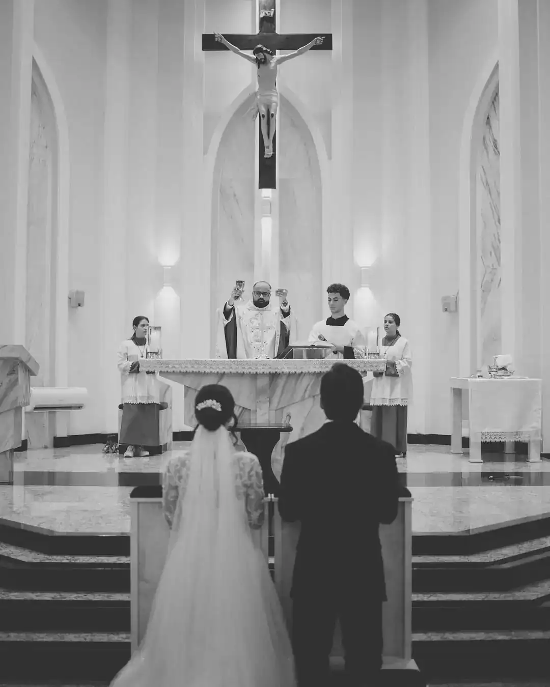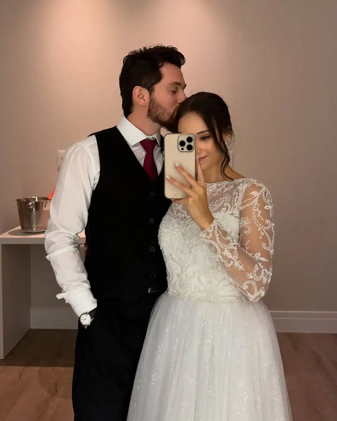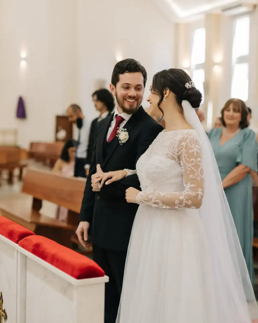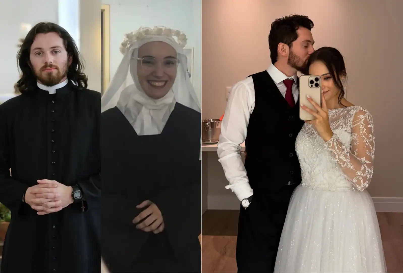 Depois que ele deixou o seminário, o casal marcou de ir juntos à missa e não se separou mais. Começaram a namorar em abril de 2024, noivaram em outubro e se casaram em março de 2025.