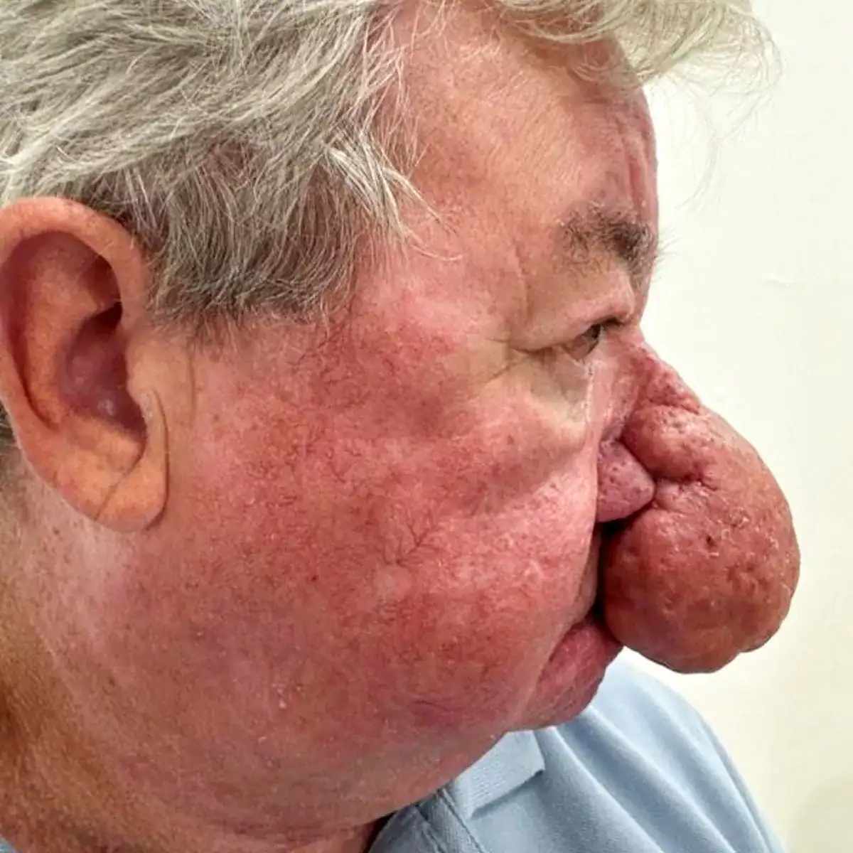 Inicialmente, Gerard acreditava que o crescimento era um sinal natural do envelhecimento. No entanto, o aumento progressivo chamou atenção nas ruas e afetou sua autoestima e vida social. O diagnóstico veio tarde: rinofima, uma condição rara caracterizada pelo crescimento anormal das glândulas sebáceas e do tecido conjuntivo no nariz.