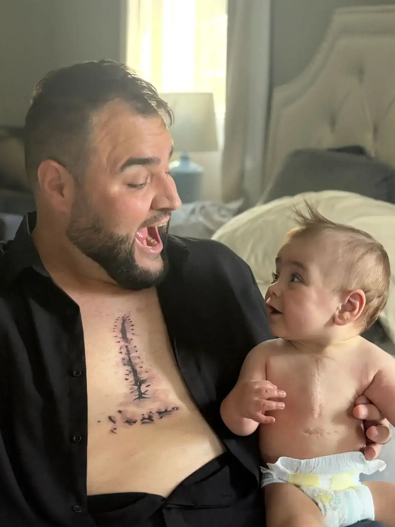 Pai tatua cicatriz de cirurgia cardíaca do filho no peito: “Estou junto com ele nessa”