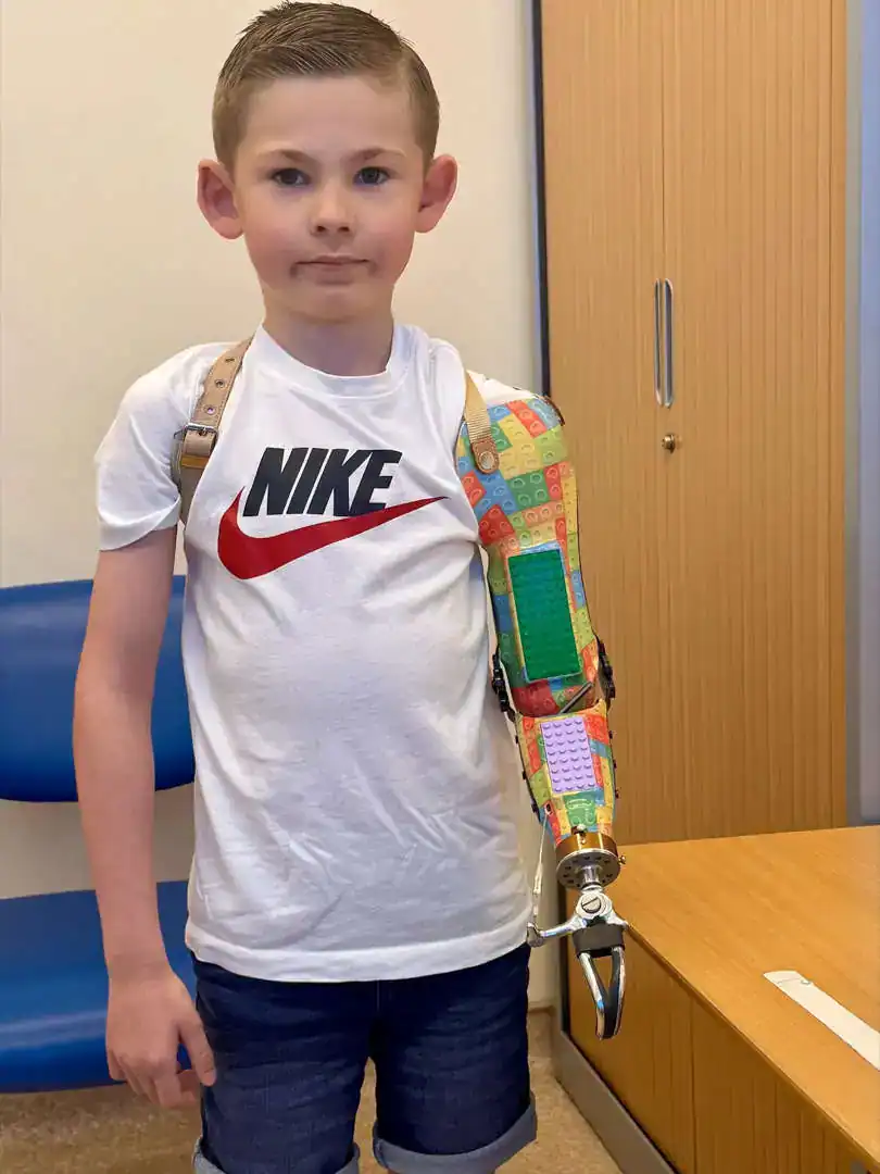 Tobi, um garoto de 8 anos que nasceu sem um dos braços, recebeu uma prótese feita com peças de Lego, especialmente desenvolvida para ele pelo Portsmouth Enablement Centre (PEC), no Reino Unido. O equipamento, criado sob medida, reflete o amor do menino pelos blocos de montar e se transformou em um símbolo de inclusão e autoestima.