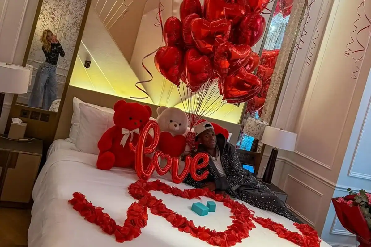 Após cobrir o rosto, Vini Jr. posa com Virginia pela 1ª vez. Veja!