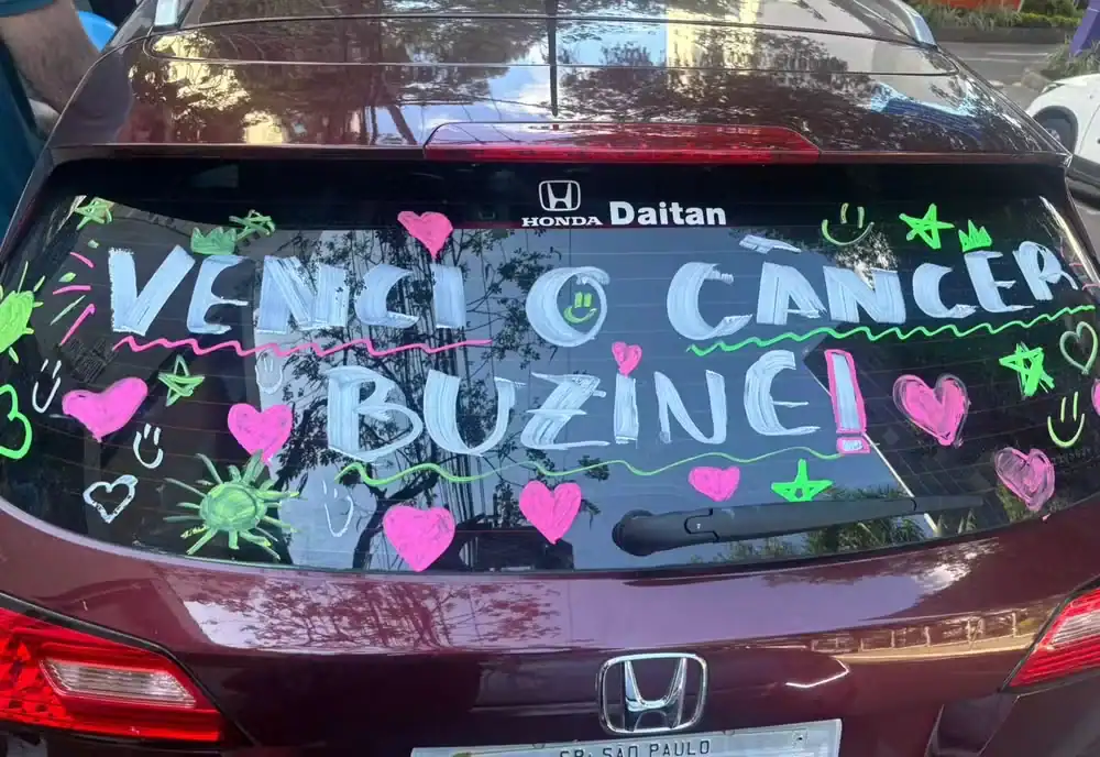 A última sessão aconteceu em 22 de outubro. “Saímos do hospital em direção a uma churrascaria, porque a Laura ama uma picanha. Foi muito bacana, pois enfeitamos o carro com os seguintes dizeres que Laura pediu: ‘Venci o câncer! Buzine’. Ao passar na Avenida 23 de Maio sentimos a emoção de muitos sons de buzina e carinho das pessoas. Deu uma sensação de que ainda existem pessoas empáticas no mundo”, contou Daniela.