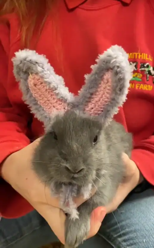 Comovida com a aparência do coelho, uma funcionária da fazenda, que também faz crochê por hobby, decidiu confeccionar orelhas de lã para ele. A ideia era deixá-lo “mais parecido com os outros coelhos” e, ao mesmo tempo, destacar sua história de forma divertida para os visitantes.