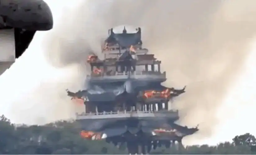 Um incêndio devastador atingiu o Pavilhão Wenchang, um dos pontos mais emblemáticos do Monte Fenghuang, na província de Jiangsu, China. O fogo começou por volta das 11h da manhã, enquanto o local recebia visitantes, e se espalhou rapidamente, consumindo a estrutura de três andares. As chamas partiram do topo e logo tomaram todo o edifício.