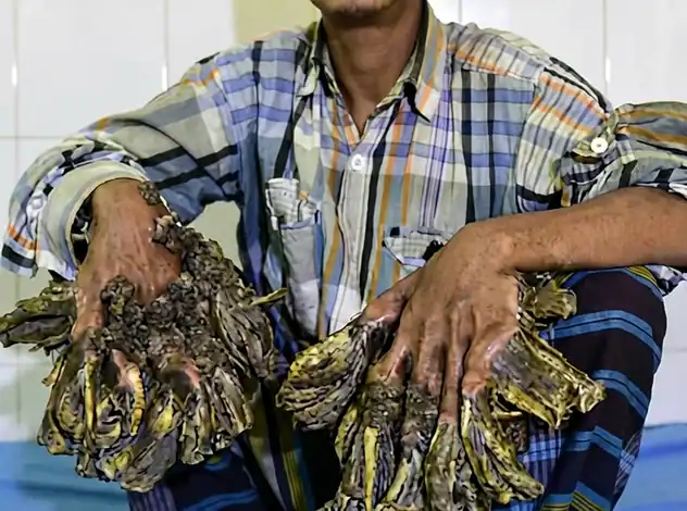 A chamada “Síndrome do Homem-Árvore” é o nome popular da Epidermodisplasia Verruciforme, uma condição genética extremamente incomum. Essa doença faz com que o organismo tenha dificuldade em combater certos tipos do vírus HPV, resultando no surgimento de verrugas e lesões espessas que se assemelham à casca de uma árvore, especialmente nas mãos, pés e rosto.