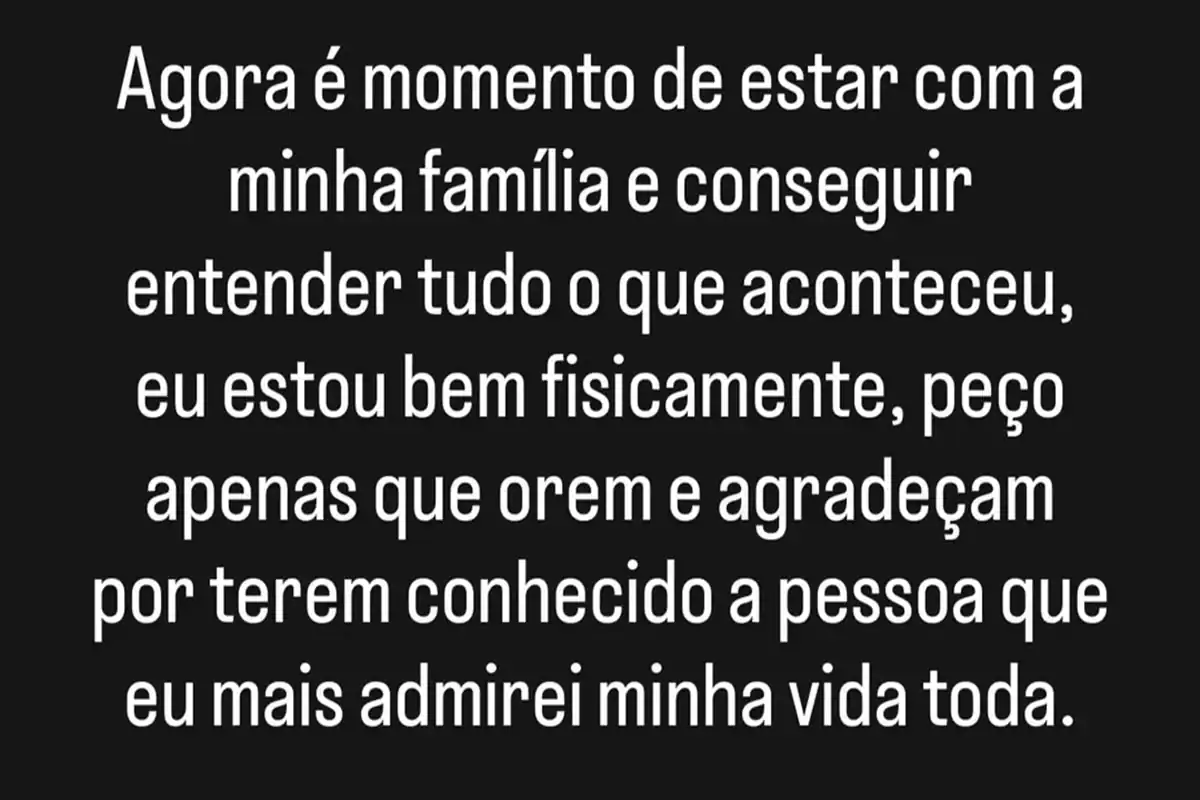 A família agradeceu o carinho e pediu compreensão neste momento delicado. As homenagens nas redes sociais continuam, enquanto fãs e amigos lamentam a partida precoce do artista.