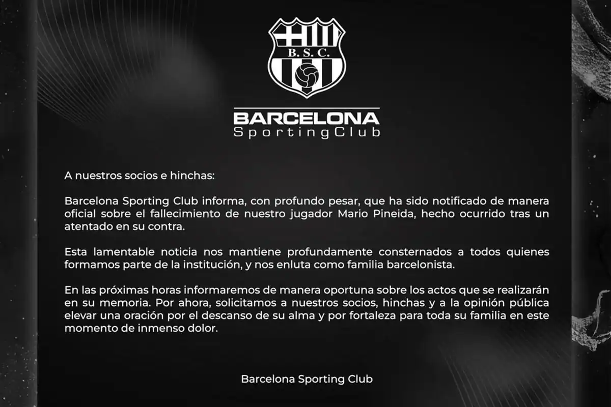 O Barcelona de Guayaquil confirmou a morte do jogador por meio de nota oficial, manifestando pesar e solidariedade à família. O clube prometeu divulgar em breve as homenagens que serão prestadas ao atleta e pediu orações pelo descanso de sua alma.