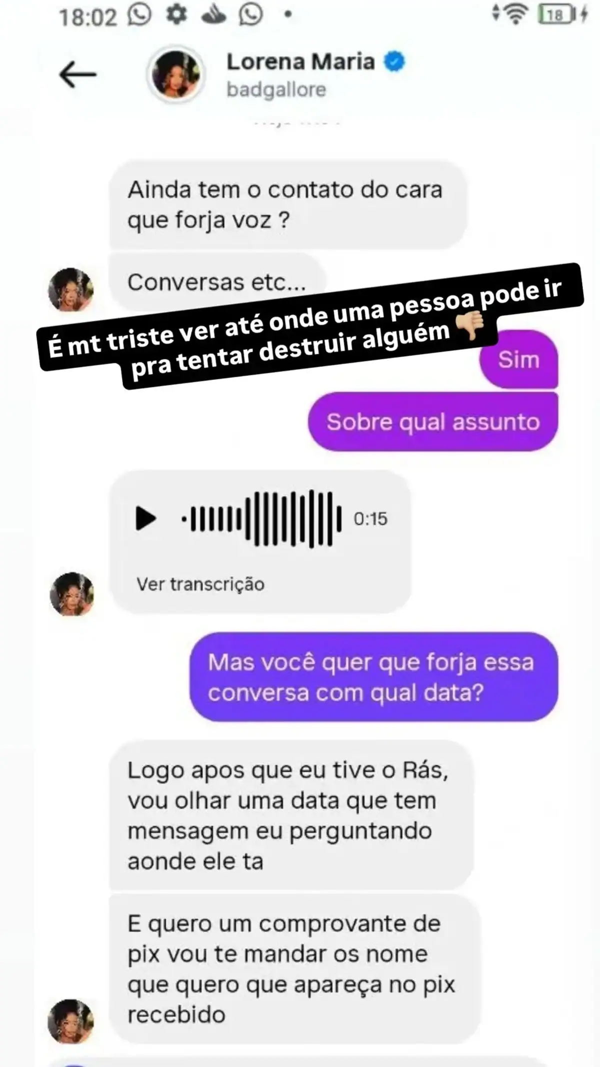 Lorena Maria também se pronunciou nas redes sociais, negando as alegações do ex. Ela contestou o valor de R$ 38 mil mencionado por MC Daniel como pensão, apresentando um comprovante de Pix no valor de R$ 5.850, destinado ao pagamento da babá do filho do casal.