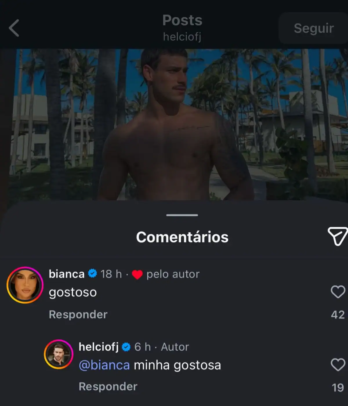 Pouco depois, foi a vez de o influenciador compartilhar outra foto em seu perfil, quando Bianca comentou “gostoso” e ele respondeu com “minha gostosa”, alimentando ainda mais os boatos de um possível romance.