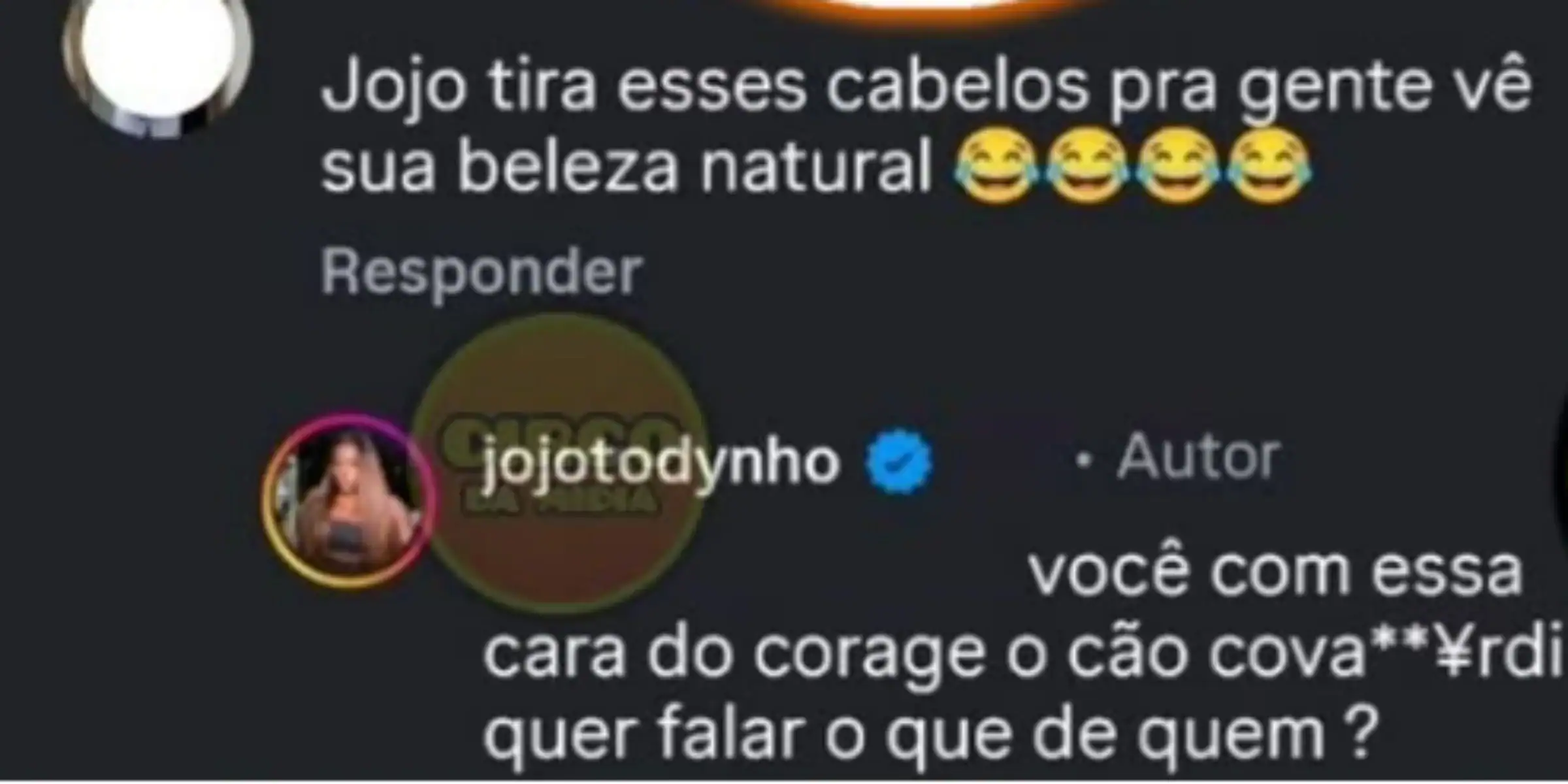 Jojo não deixou a provocação passar em branco e respondeu com firmeza: “Você com essa cara de Coragem, o Cão Covarde quer falar o que de quem?”, escreveu a artista.
