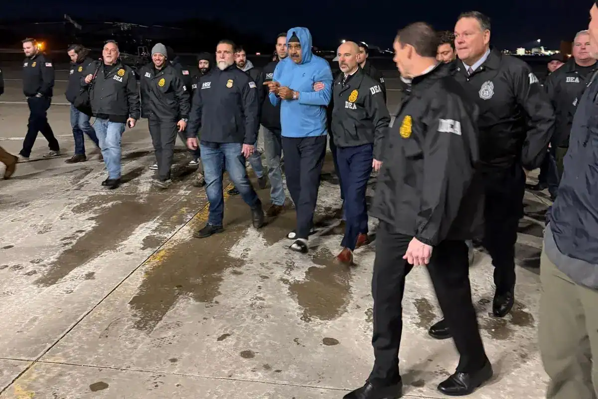 Imagem mostra líder venezuelano escoltado por agentes internacionais em aeroporto nos EUA. (Foto: Instagram)