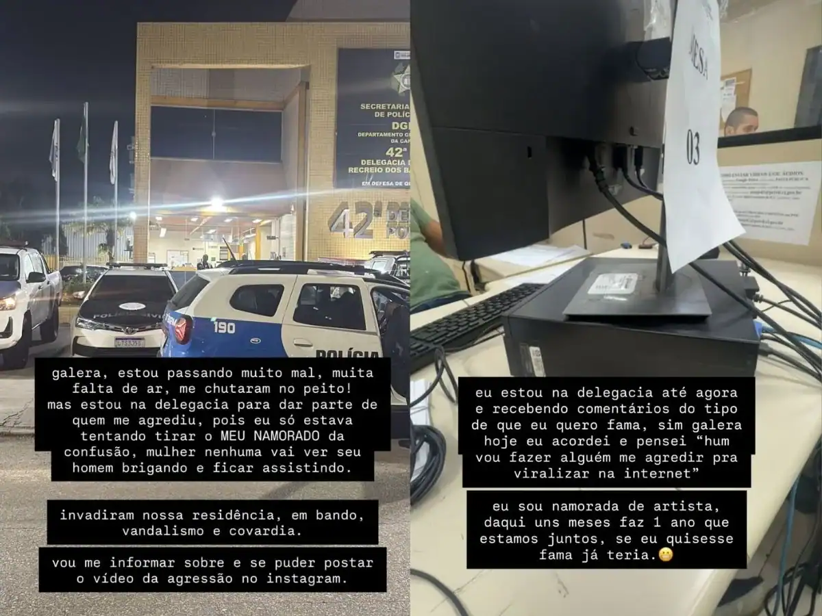 O tumulto que envolveu MC Borges e o grupo de Poze do Rodo ultrapassou as redes sociais e desembocou em delegacia na madrugada desta quinta-feira (29/1). Pamella Lopes, namorada de MC Borges, formalizou um boletim de ocorrência depois de sofrer agressões físicas durante a invasão da residência que dividia com o músico. A estudante afirmou que testemunhou cenas de violência e decidiu levar o caso às autoridades para que os agressores sejam identificados e responsabilizados.