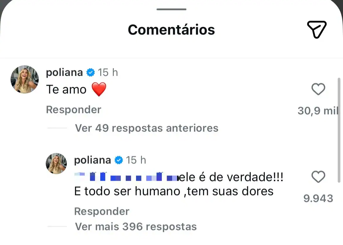 Poliana Rocha enfatizou: “Ele é de verdade!!! E todo ser humano tem suas dores”. A mãe deixou ainda uma mensagem de afeto ao cantor: “Te amo”. A reação da influenciadora ganhou apoio dos seguidores, e Leonardo, pai de Zé Felipe, marcou presença nos comentários com um discreto emoji de coração vermelho.