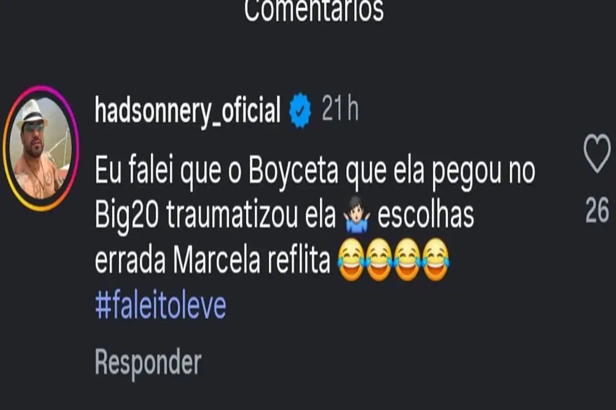 Hadson Nery, popularmente conhecido como Hadballa, declarou que a alteração de comportamento da médica foi motivada pela relação breve que ela teve com o modelo Daniel Lenhardt durante sua participação no Big Brother Brasil 20.