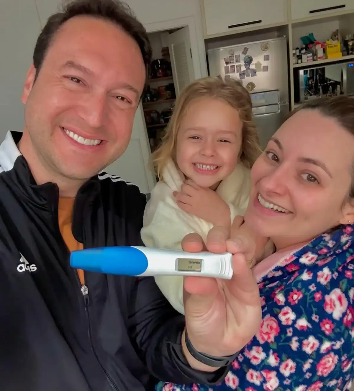 Edu Ribeiro celebra a chegada de José Eduardo ao lado da esposa e do filho mais velho (Foto: Instagram)
