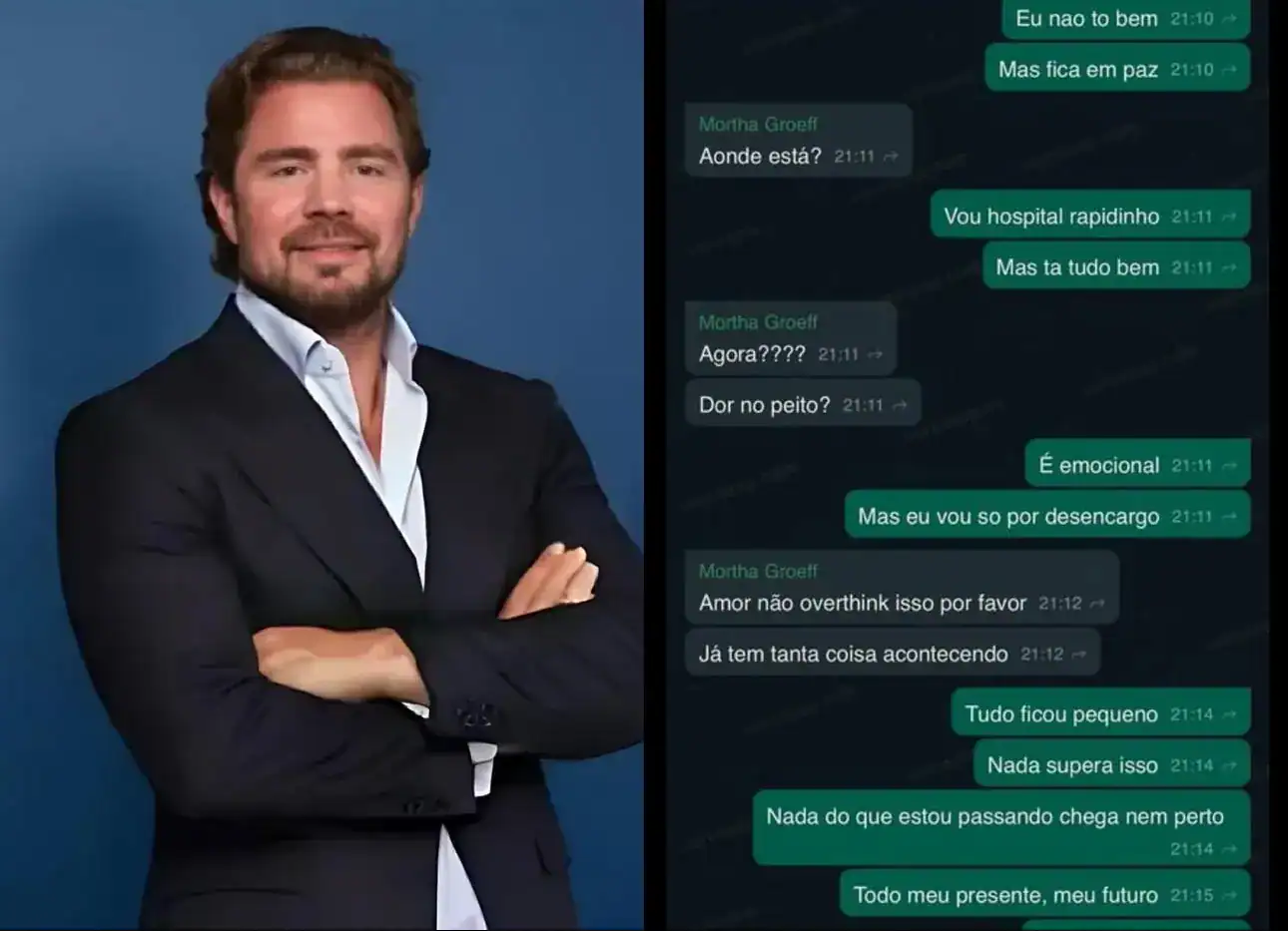 Mensagens atribuídas ao empresário Daniel Vorcaro, dono do Banco Master, passaram a circular nas redes sociais após a divulgação de prints de uma conversa com a influenciadora Martha Graeff. No diálogo, o empresário relata um momento de impacto emocional após descobrir uma traição e afirma que chegou a procurar atendimento médico.