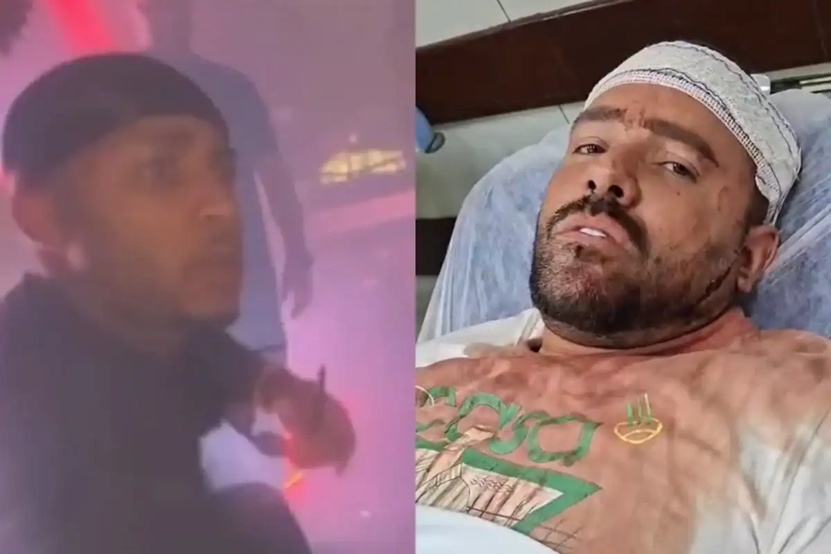Durante a confusão, Afrodisíaco é espancado e aparece com um sangramento visível na cabeça. O registro mostra o rastro de sangue após os golpes. Após o ocorrido, ele foi atendido pela equipe médica do local.