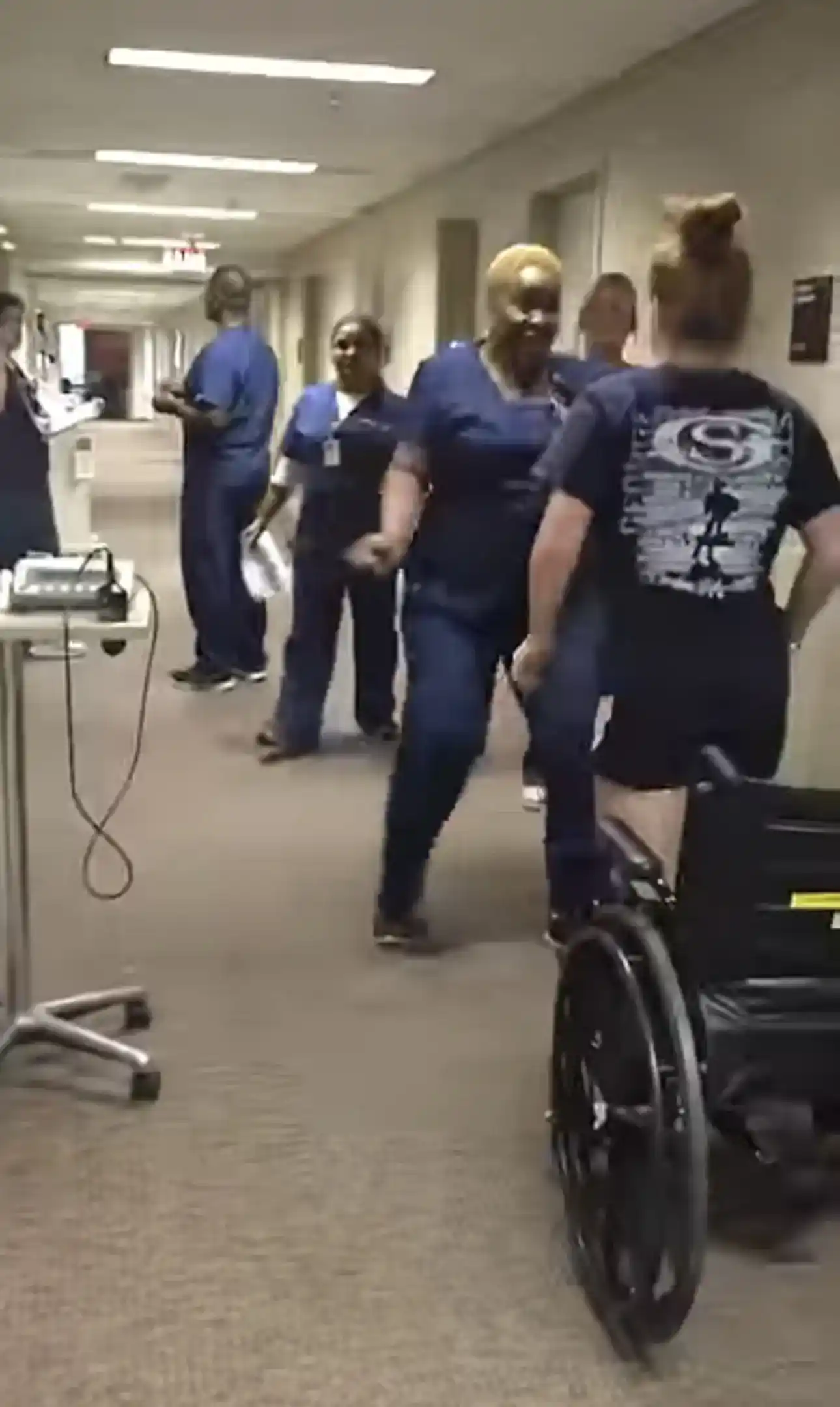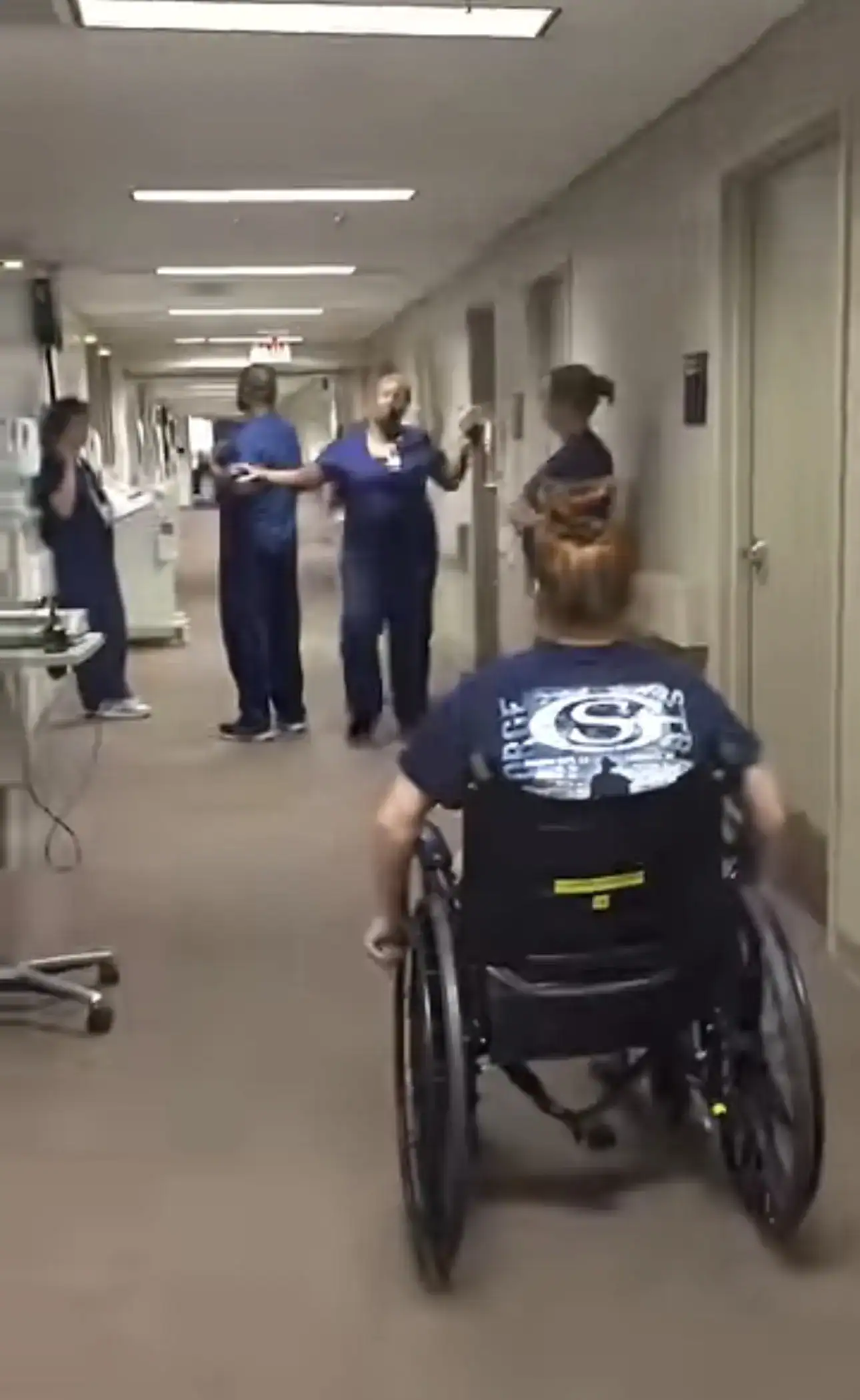 Bailey Murrill surpreendeu uma enfermeira ao se levantar da cadeira de rodas e caminhar até ela após passar 11 dias paralisada, em um hospital onde estava em recuperação. A mulher decidiu fazer a surpresa como forma de agradecer o cuidado recebido.