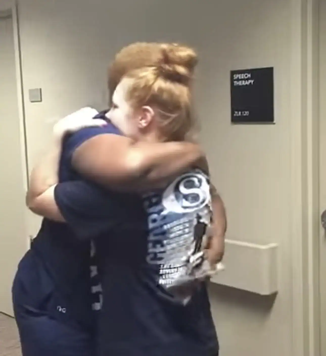 O momento foi registrado em vídeo e mostra a reação da profissional ao perceber que a jovem estava de pé. Ao se aproximar para um abraço, a enfermeira se surpreende quando Bailey se levanta e começa a andar até ela.
