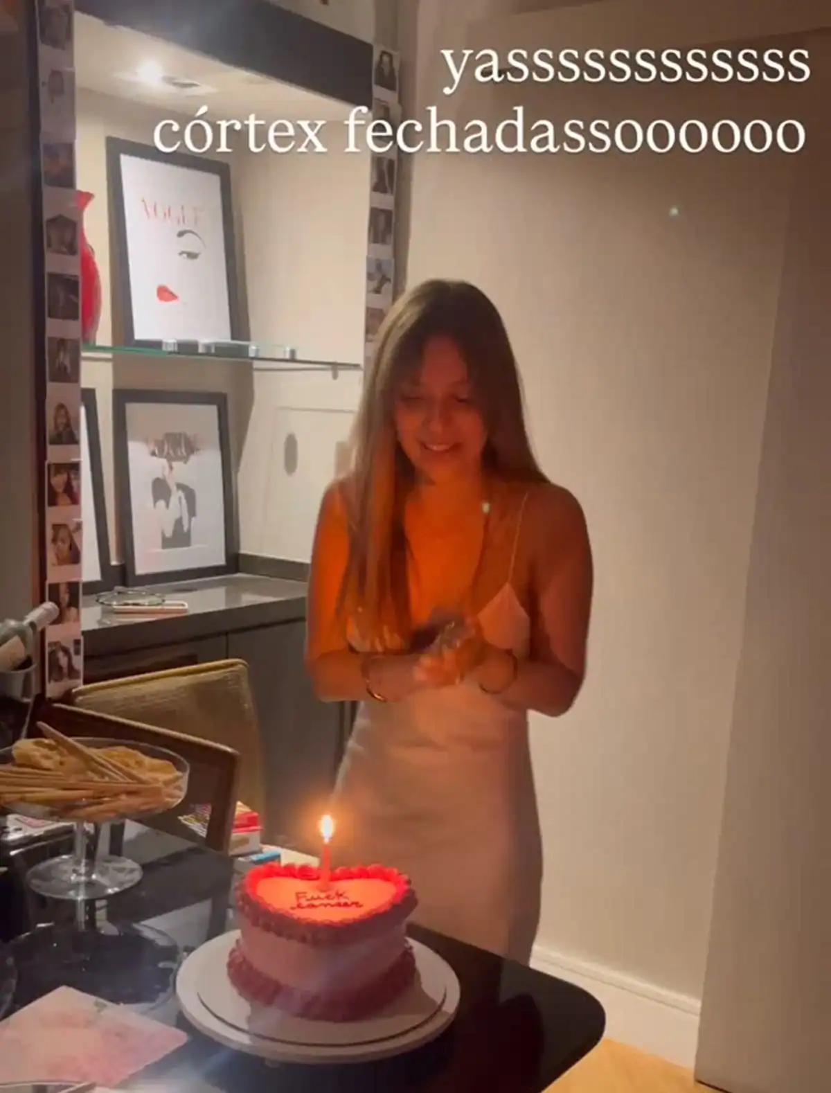 Na postagem, a influenciadora comemorou a data especial com um bolo em formato de coração, decorado com a frase “fuck câncer” (foda-se câncer, em tradução livre).