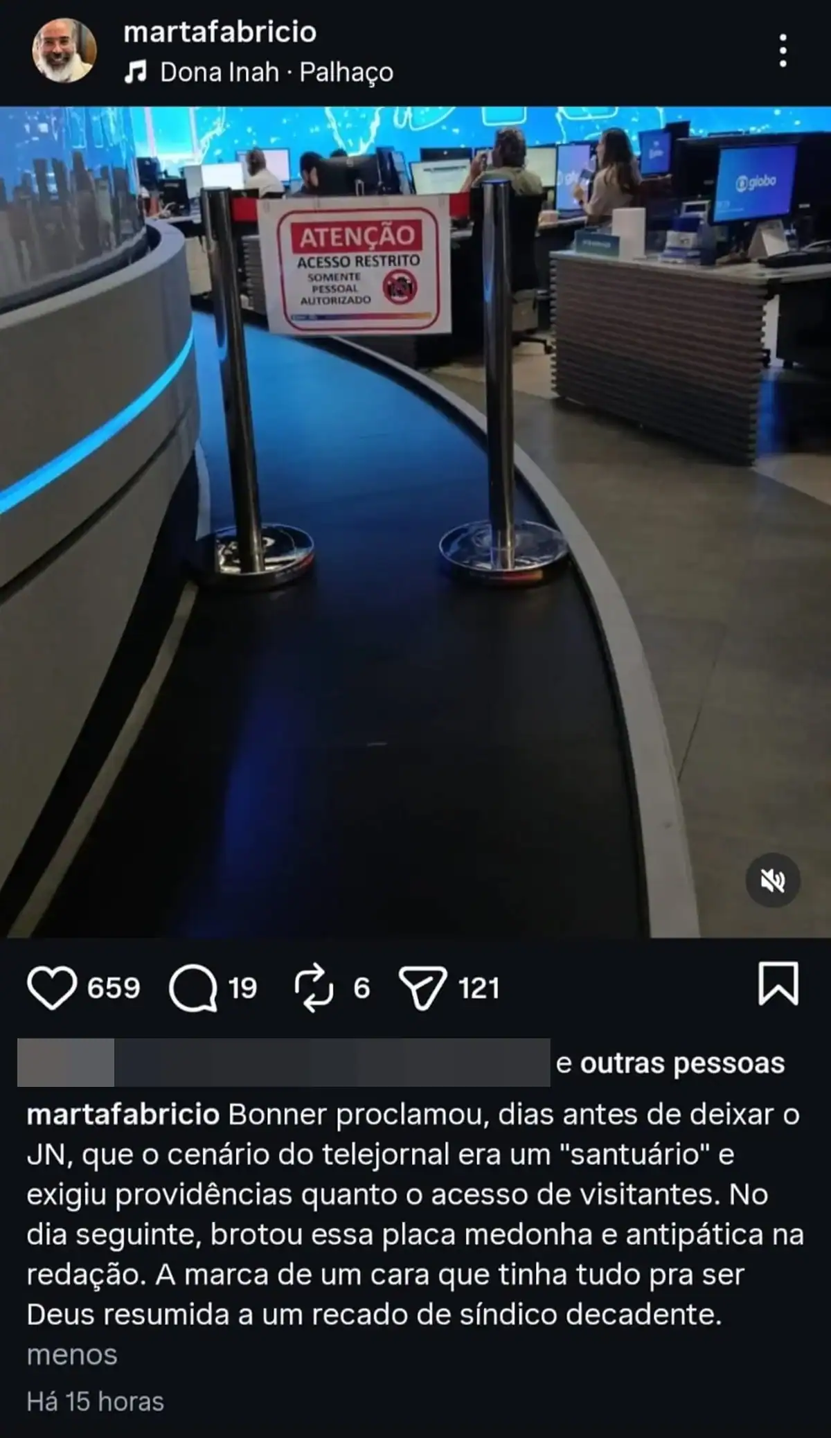Ainda na publicação, o comunicador analisou: “A escuta é a gênese de um processo como esse, porque está tudo errado. Devo à Globo pouquíssimos inimigos (se bem que a lista aumentou agora!) e à construção de uma família unida e ouriçada: turma madrugadora do Entretenimento; amigos incansáveis das afiliadas!!!! E da própria redação da Globo RJ”, escreveu, antes de completar: