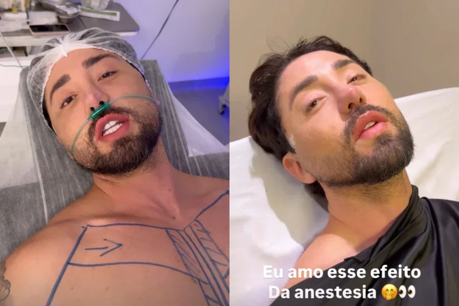 O influenciador não especificou quais procedimentos foram realizados, mas as imagens mostram intervenções nas pernas, abdômen e peito. “Aguardem minha nova skin”, brincou o influencer.