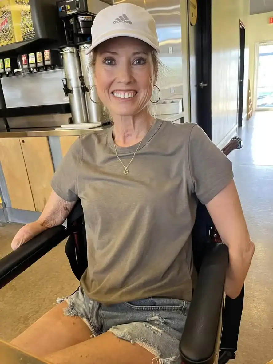 Após acordar, Sherri foi informada de que os membros não poderiam ser salvos. As pernas foram amputadas abaixo dos joelhos em junho de 2023 e os braços abaixo dos cotovelos no mês seguinte. Ela recebeu alta após quatro meses de internação e passou por reabilitação. “Eu sou muito forte mentalmente. Eu simplesmente escolho ser feliz. … Isso não quer dizer que eu não tenha uma crise de vez em quando e chore um pouco. Eu não deixo isso durar muito”, afirmou.