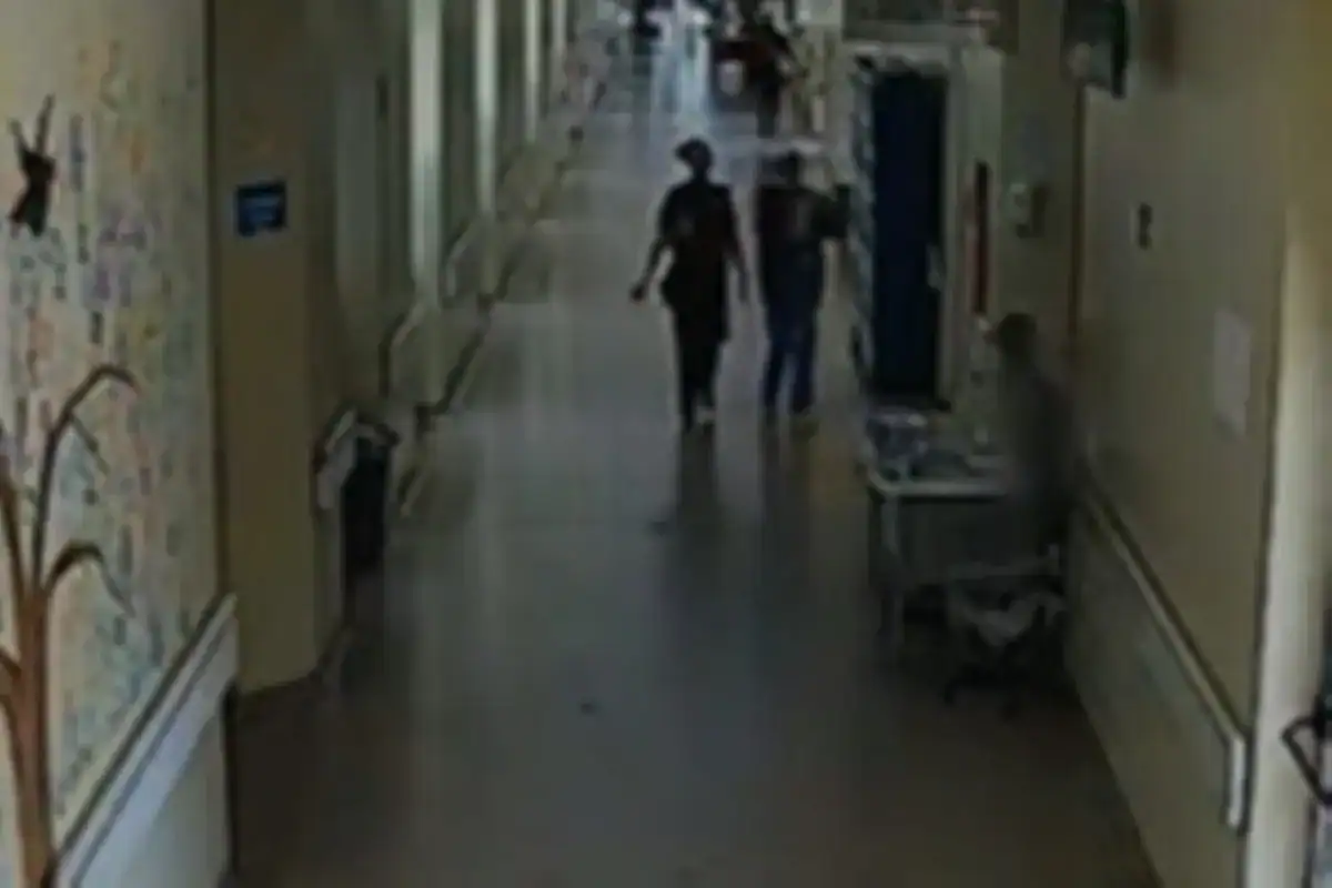 Eliane foi filmada carregando o bebê no colo, enquanto circulava dentro do hospital. Na primeira gravação, a técnica de enfermagem é vista caminhando por um dos corredores da unidade de saúde. Ela aparece, inclusive, virando de costas e olhando para um grupo de pessoas ao passar no trajeto.
