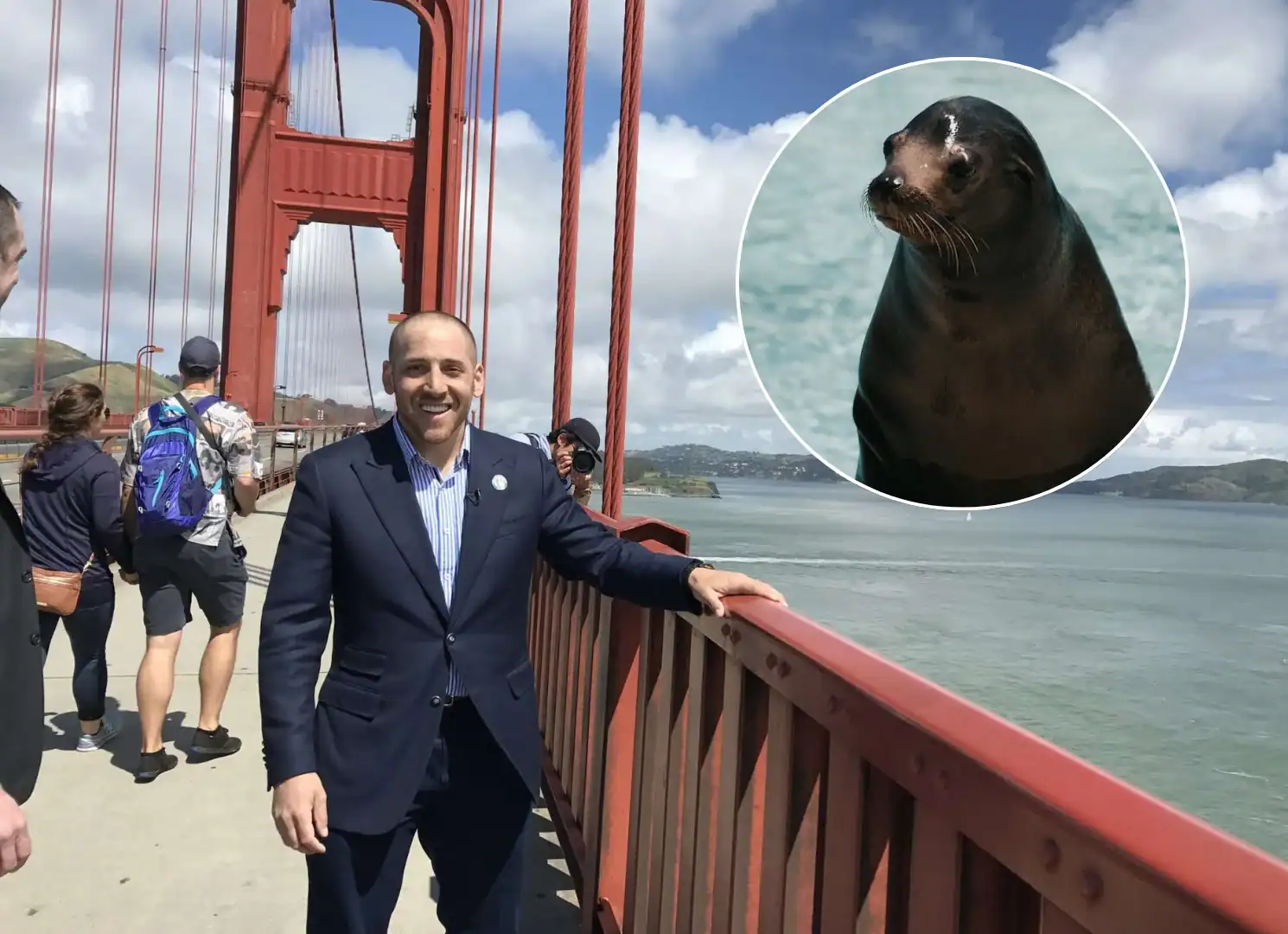 O americano Kevin Hines sobreviveu a uma tentativa de suicídio ao pular da Ponte Golden Gate, em Califórnia, após enfrentar um quadro de depressão profunda. Durante o episódio, ele foi salvo com a ajuda de um leão-marinho.