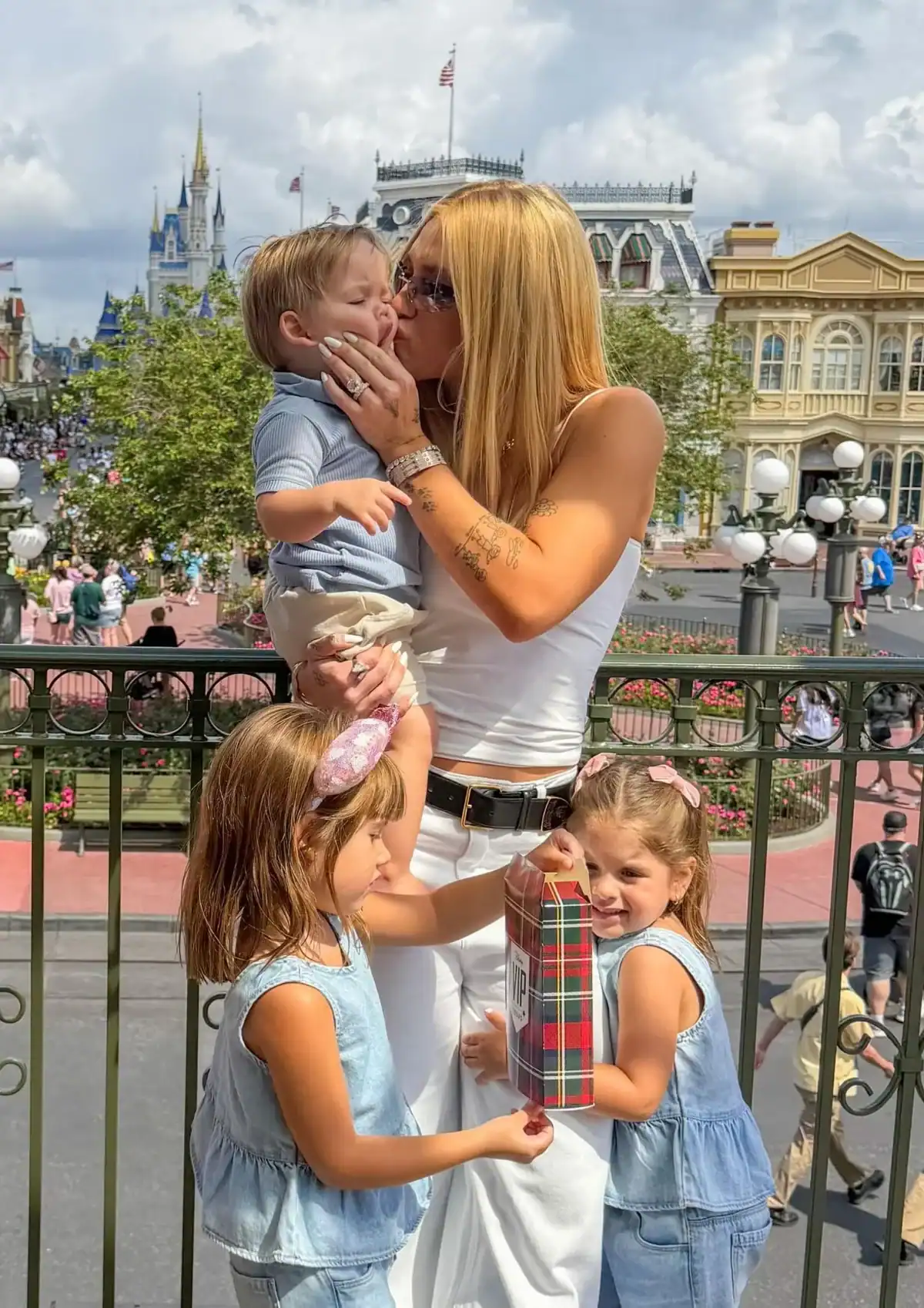 Nas imagens, ela aparece abraçando os filhos e distribuindo beijos: “Agora eles vão ficar com o pai e eu já estou com muita saudade”, escreveu na legenda.