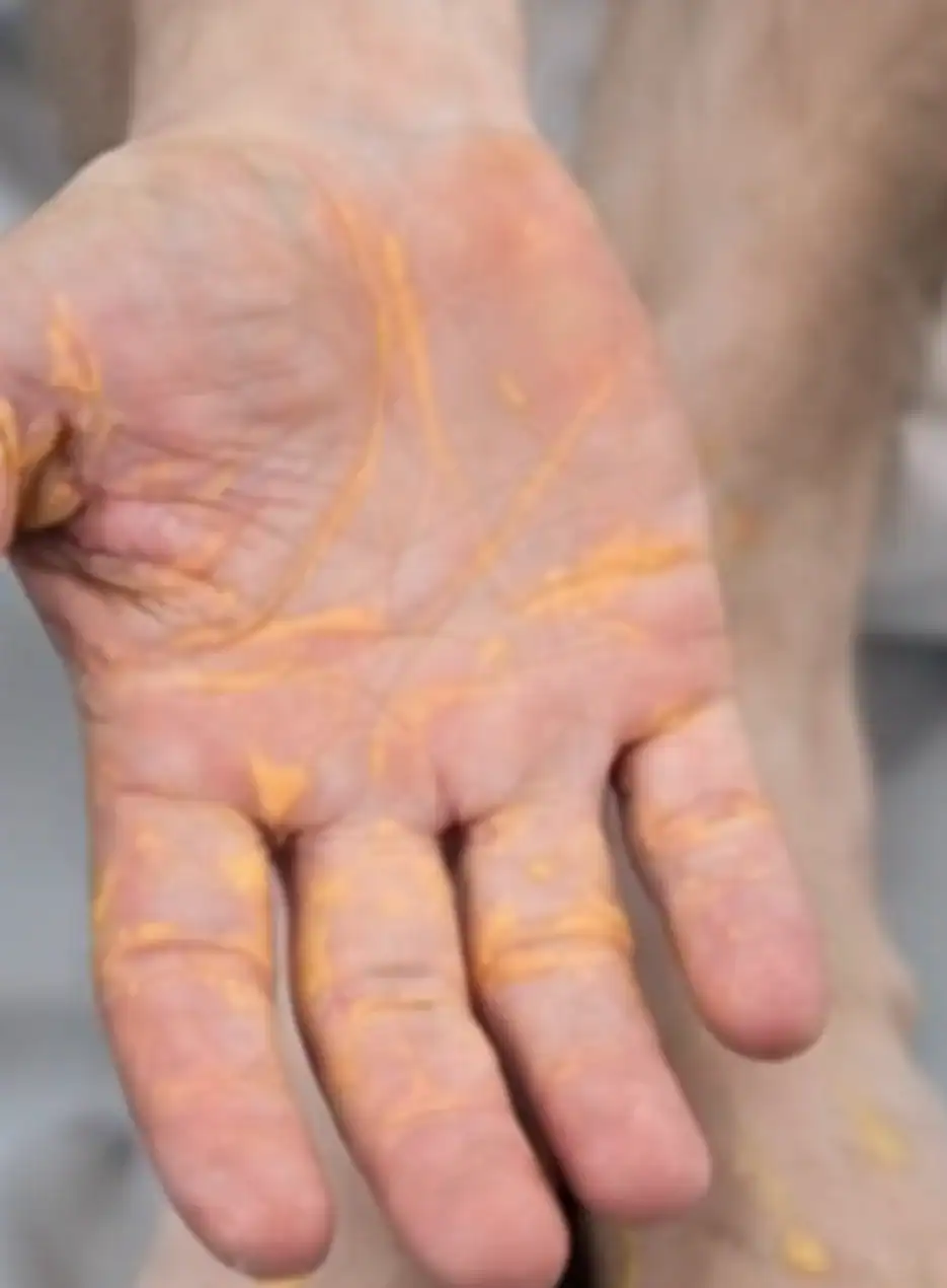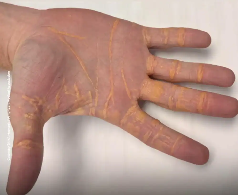 De acordo com o relato, nos primeiros meses ele apresentou perda de peso, aumento de energia e melhora na clareza mental. No entanto, após cerca de oito meses, começaram a surgir lesões amareladas nas pálpebras, que se espalharam posteriormente para as mãos, pés e cotovelos.