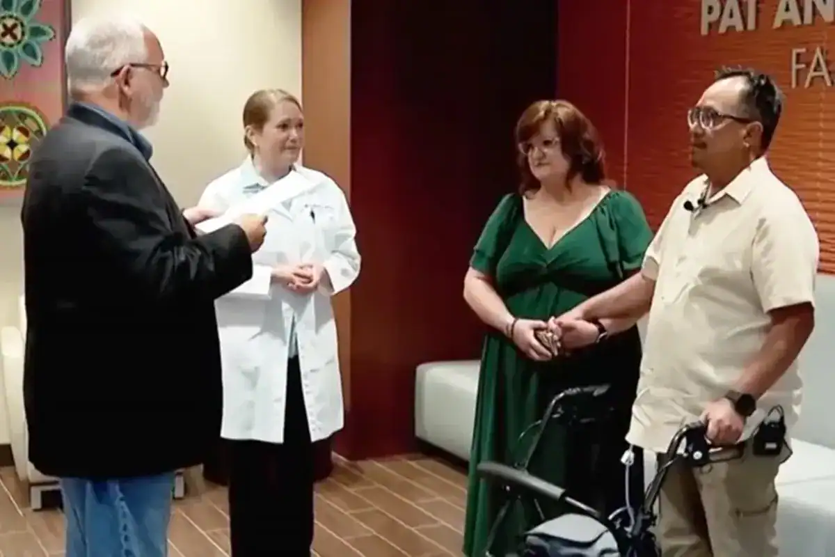 O casal texano Jesus Jessie Parra e Kelly St. Pierre oficializou a união no Baylor University Medical Center em Dallas, em 18 de abril, conforme relatado pela NBC DFW.