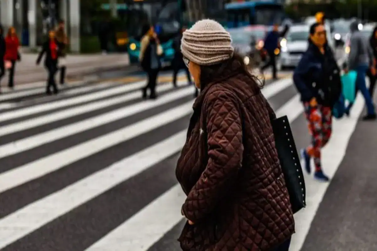 Pedestres agasalhados cruzam rua em meio à onda de frio polar no Sul do Brasil (Foto: Instagram)