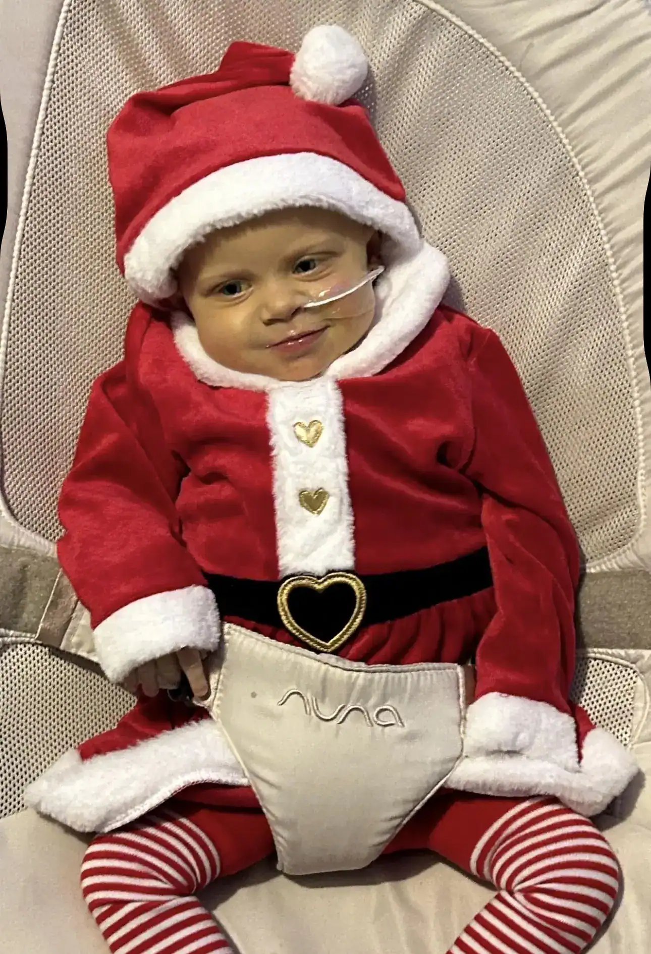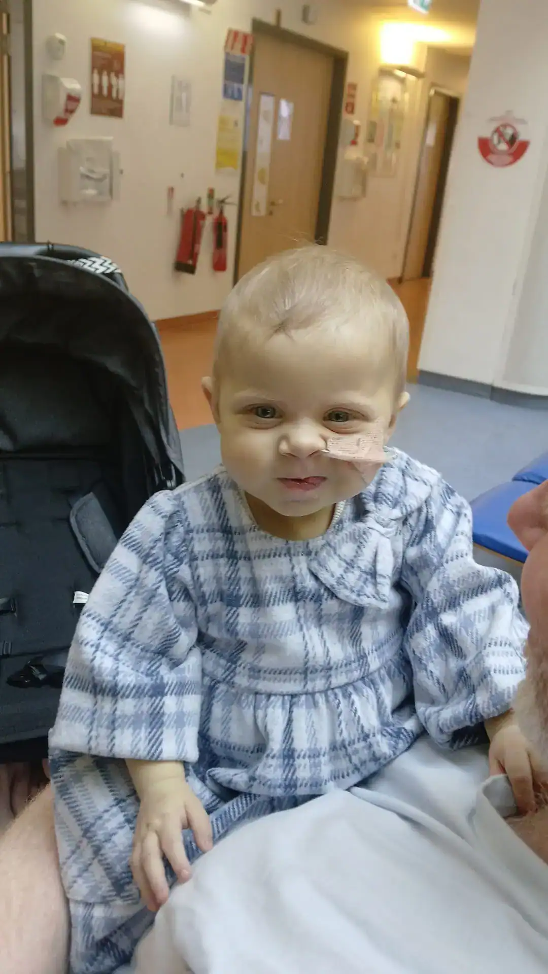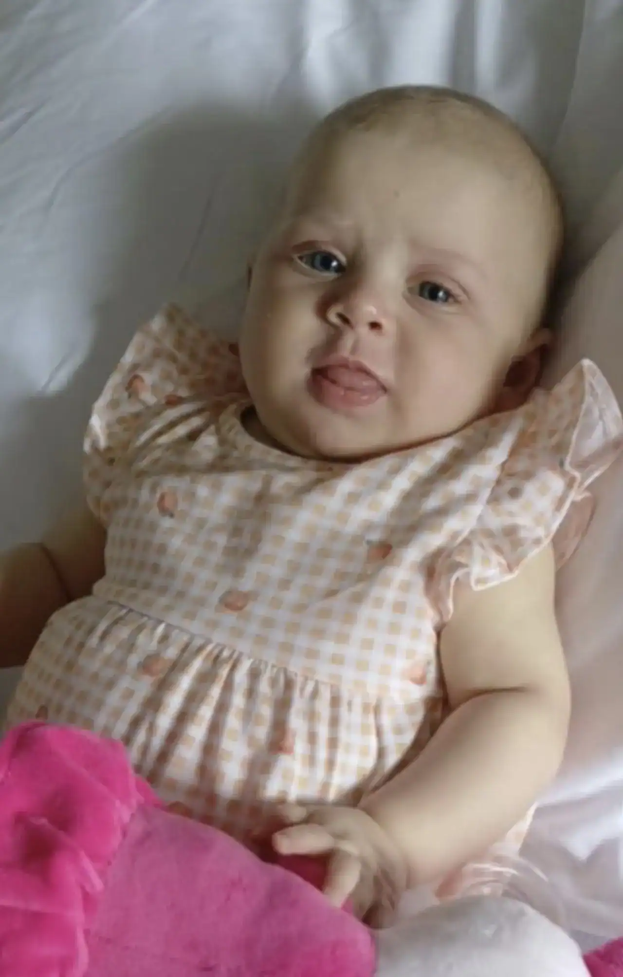 Millie nasceu com uma condição rara e grave chamada atresia biliar com malformação esplênica, que afeta o fígado e outros órgãos vitais. Apesar da idade, ela já passou por procedimentos complexos.