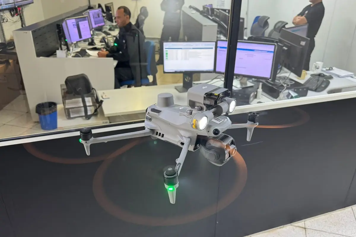 O drone também possui uma câmera térmica de alta resolução, sistema de zoom e laser de longo alcance, além de recursos de inteligência artificial e sensores de detecção de obstáculos, permitindo a visualização detalhada de pessoas, veículos e objetos em tempo real.