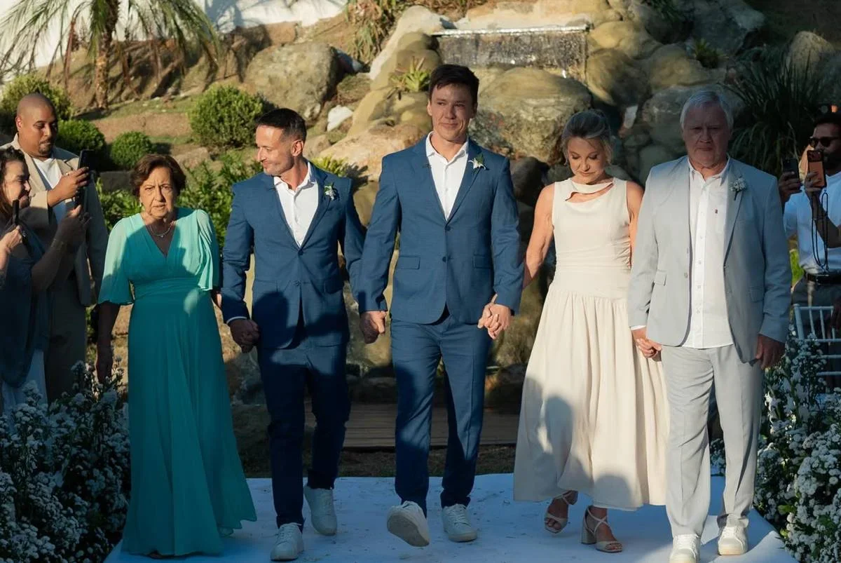 Durante a cerimônia, o jornalista também enfatizou o significado mais amplo do gesto. Ele afirmou: “Casamos não só pela gente, mas também por muitos outros casais como nós, que sonham em dar esse passo, mas ainda não têm coragem de viver essa realidade. Amar por inteiro e viver a nossa verdade é um dos maiores propósitos da nossa existência”.