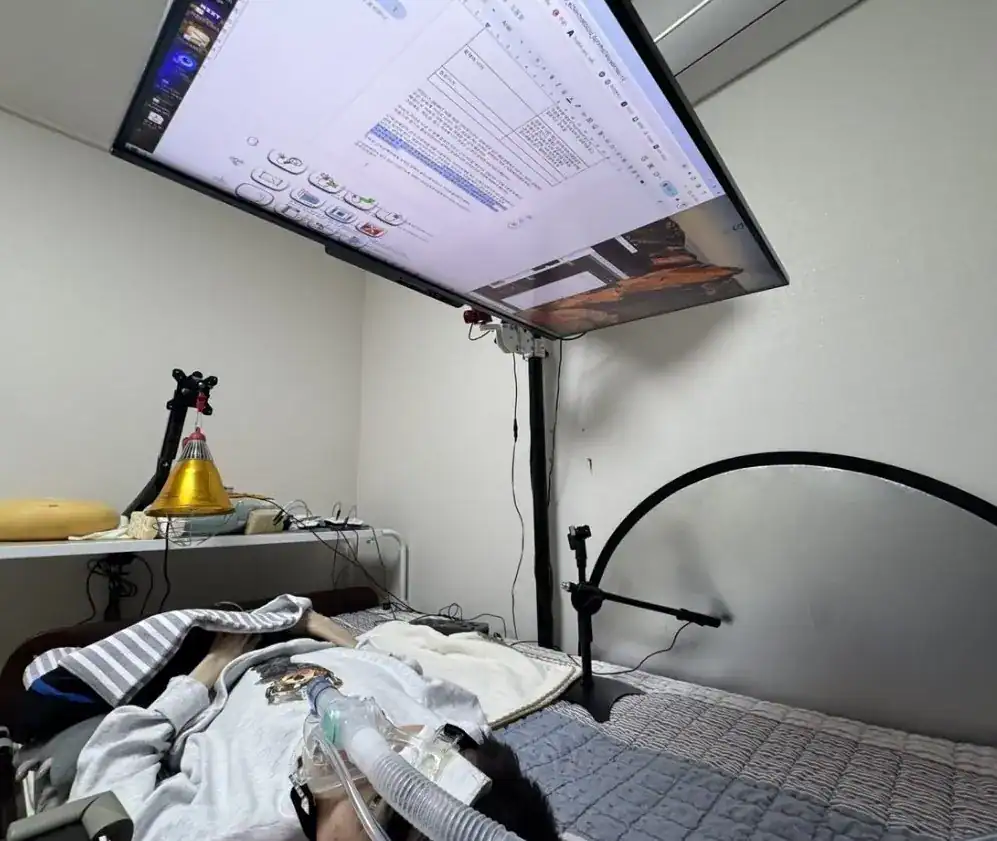 Deitado e sem se mover, ele concluiu o mestrado piscando as palavras, letra por letra!