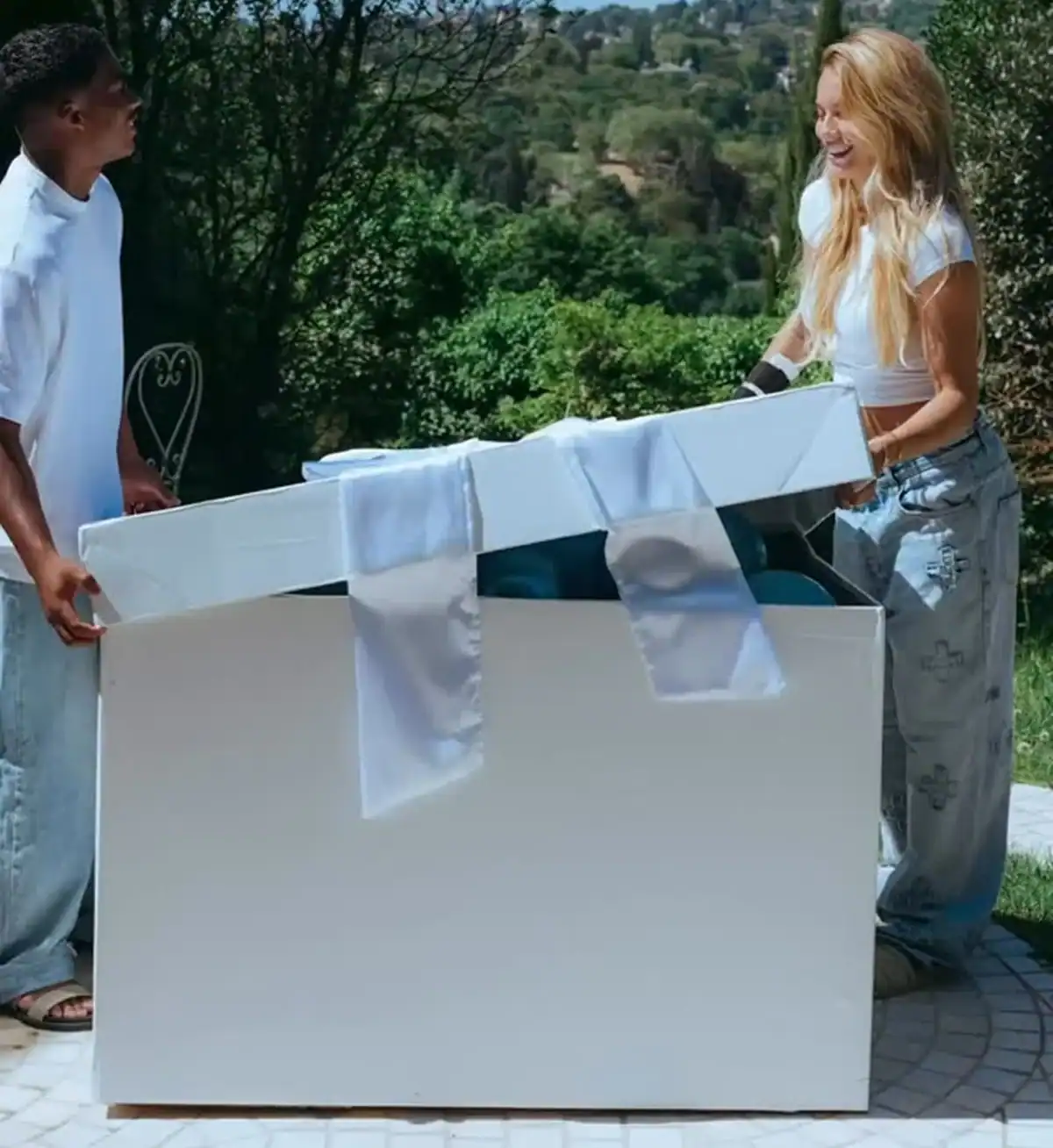 Nas imagens, o casal aparece em frente a uma caixa gigante e, ao abri-la, balões azuis surgem, indicando que a criança será um menino. O nome do filho deles, no entanto, ainda não foi divulgado.