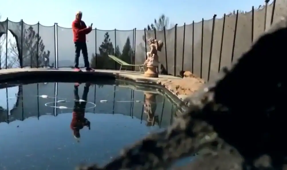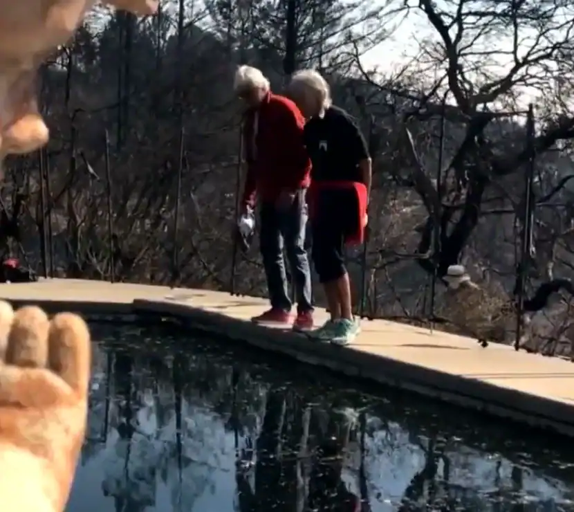 Eles permaneceram na piscina até que o fogo consumisse completamente a casa ao redor e fosse possível sair com segurança. Após deixarem a água, conseguiram entrar em contato com as filhas.